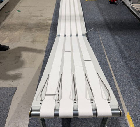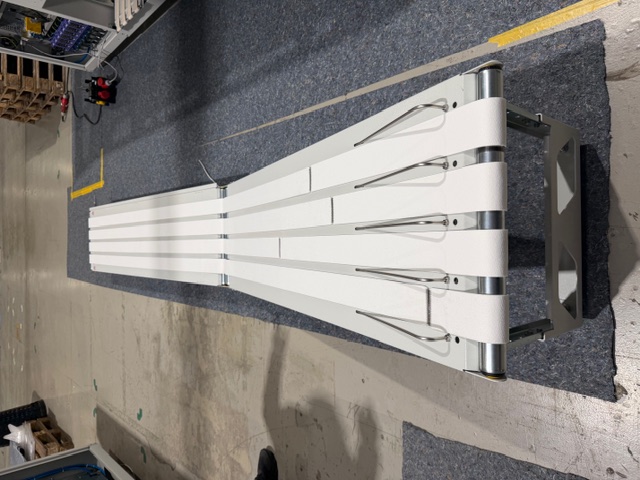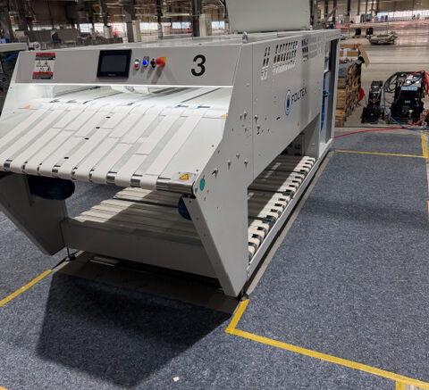4 Aussortierstapler (Hubstapler) und ein Abförderband